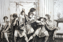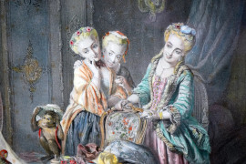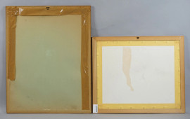 Lotto composto da un'incisione ed una stampa a colori raffiguranti la "Morte di Timofane" e "Toilett-Studien", misure max cm 55,5x40,5, XIX secolo, entro cornici, (macchie sulla carta).