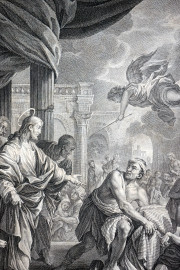 Lotto di 12 incisioni del XIX secolo a soggetto di scuole pittoriche ed artisti europei, cm 45x30,5, (difetti)