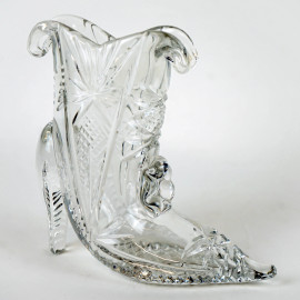 Lotto di cinque oggetti in cristallo, composto da tre cofanetti, un posacenere ed una piccola scultura di scarpa con tacco, alt. max cm 14, XX secolo, (lievi difetti e restauri).