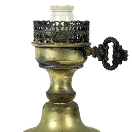 Lotto di due lampade in metallo ed argento, alt. max cm 28,5, XX secolo, (difetti).