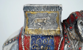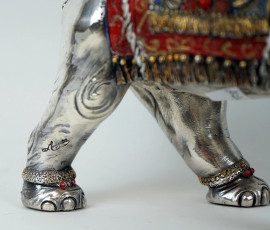 Lotto di due sculture di elefanti bagnate in argento, misure max cm h 23x21,5, XX secolo, (difetti).
