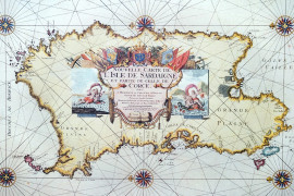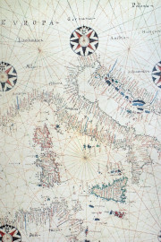 Lotto di due stampe raffiguranti la "Nouvelle Carte de l'Isle de Sardaigne" ed carta nautica dell'Europa, misure max cm 60,5x89,5, XX secolo, entro cornici.