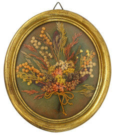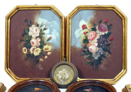 Lotto di otto miniature diverse dipinte e con applicazioni raffiguranti fiori, misure max cm22,5x17 circa, epoche diverse, (difetti).