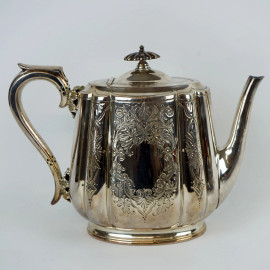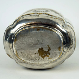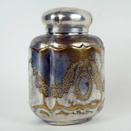 Lotto di tre oggetti in Sheffield, composto da una teiera, un barattolo porta tè ed una ciotola, alt. max cm 20, XX secolo, (segni del tempo).