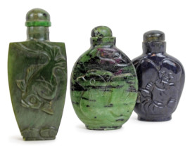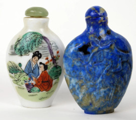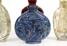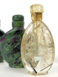 Lotto di undici snuff bottles in materiali ed epoche diverse, altezza max cm 7,5, (un tappo non pertinente, difetti e mancanze)