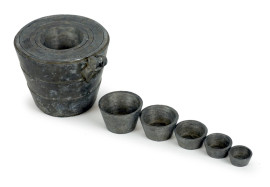 Lotto di vari pesi in peltro, cm h 12, XX secolo, (difetti).