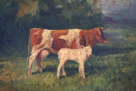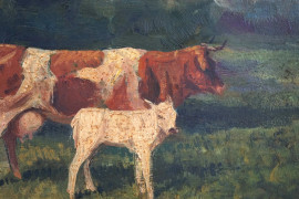 Mucche, olio su tavola, cm 24x27, entro cornice.