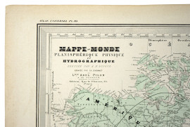 Mappamondo-Planisfero fisico, cm 60x83, inizi XX secolo, (difetti sulla carta)