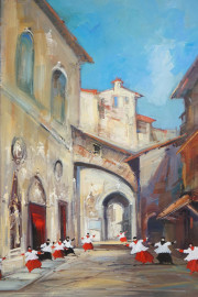 Libera uscita, olio su tela, cm 70x50, entro cornice.