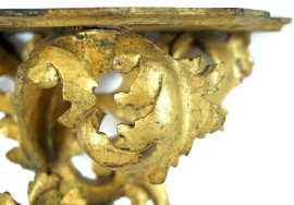 Mensola in legno intagliato e dorato, cm h 29, inizi XX secolo.