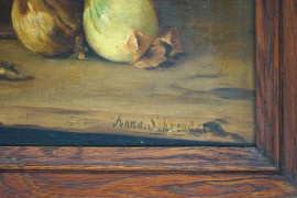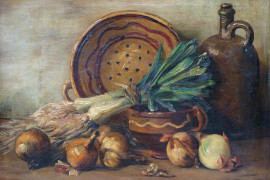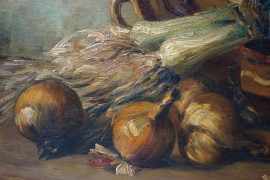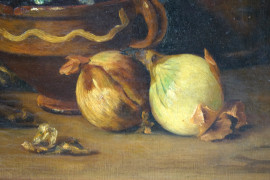 Natura morta con ortaggi, olio su tela, cm 47x61, firmato, entro cornice.