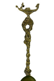 Nove cucchiaini e cinque forchettine veneziane in metallo dorato, lunghezza max cm 14, inizi XX secolo, (difetti).