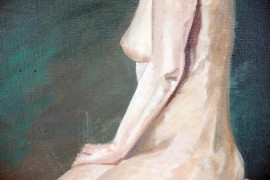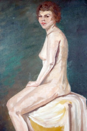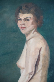 Nudo di donna, olio su tela, cm 52x42, metà XX secolo, entro cornice