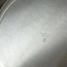 Otto sottopiatti in metallo argentato, diam. cm 29,5, marcati Calegaro alla base, seconda metà XX secolo, (difetti).