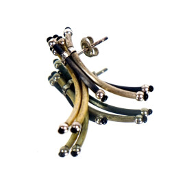 Paio di orecchini in argento 925 nei toni dell'oro e del grigio, lunghezza cm 3, (segni di utilizzo).
