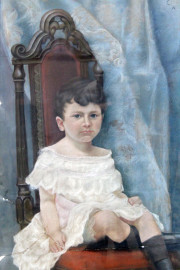 Ritratto di bambino, pastello su carta, cm 113x59, siglato e datato, (difetti sulla carta).