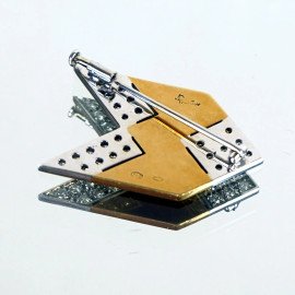 Pomellato, spilla a freccia in oro 18 KT con brillantini, di cui uno color giallo, gr.17,7