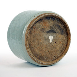 Porta pennelli in porcellana celadon con decori geometrici, cm h 13, diam. cm 17,5, Cina, XIX secolo, (difetti).