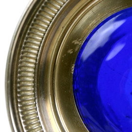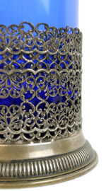Portabicchiere in argento traforato con bicchere in vetro blu cobalto, alt. cm 13, gr. 110