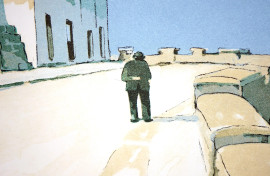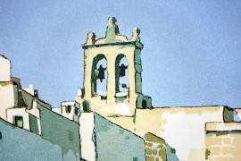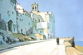 Scorcio pugliese, litografia a colori, cm 70x100,5, entro cornice.
