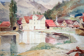 Scorci lacustri, acquerelli su carta, cm 19x28, firmati, entro cornici.