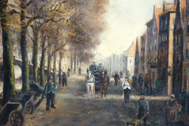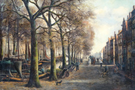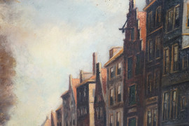 Scorcio di Amsterdam, olio su tela, cm 75x100, firmato, entro cornice.