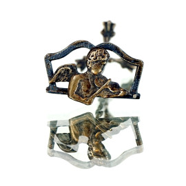 Sei piccoli segnaposto in argento raffiguranti cherubini con violino, alt. cm 6, peso gr. 80, (segni del tempo).