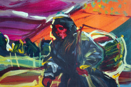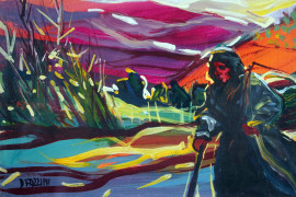 Sera, acrilico su tela, cm 23,5x29,5, firmato, entro cornice.