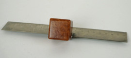 Set di tre accessori da scrivania, composto da un righello, una lente di ingrandimento ed un tagliacarte, lunghezza max cm 21, XX secolo, (segni di utilizzo).