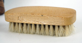 Sharra Pagano, set da lucidatura per scarpe, composto da due tubetti di crema, un calzascarpe e quattro spazzole entro astuccio, ingombro totale cm 11,5x13,5x5,5, XX secolo, (segni di utilizzo).