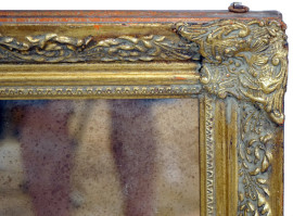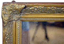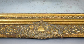 Specchiera di linea rettangolare in legno intagliato e dorato, misure ingombro cm 67x77, XX secolo