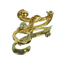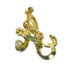 Spilla a forma di lettera "A" in metallo dorato, cm 5x3.