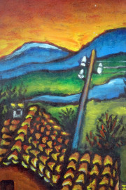 Tetti, olio su tela, cm 24x18,5, firmato, entro cornice.