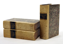 Tre volumi: "Geografia Storica Moderna Unversale di Niccolò Tommaseo", Milano, Francesco Pagnoni, 1857-1861, (pagine recise, difetti e macchie sulla carta).