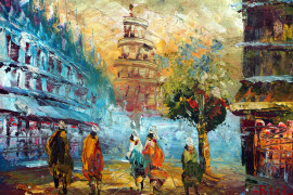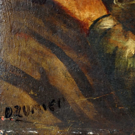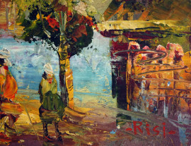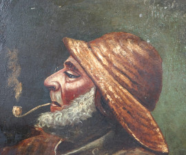 Uomo con pipa e e Scorcio di Parigi, lotto di due dipinti ad olio su tavola, cm 26x24 e 20,5x25,5, firmati