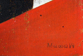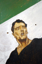 Uomo in camicia nera, tecnica mista su compensato, cm 27,5x19,5, siglato, (difetti).
