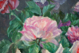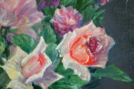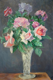 Vaso con fiori, olio su tela, cm 50x35, siglato, entro cornice, (lievi difetti alla tela).