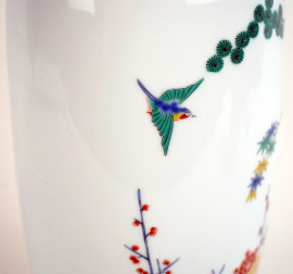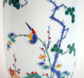 Vaso in porcellana bianca a decoro di fiori, cm h 26,5, Cina, XX secolo.