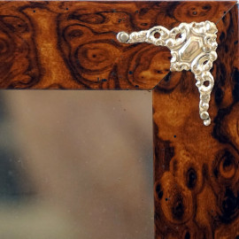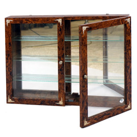 Vetrina in radica di noce, interno con fondo specchiato e divisori in vetro, cm 48x44x7,5, XX secolo