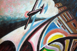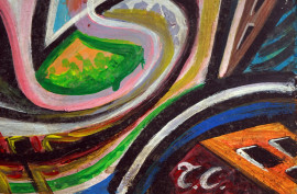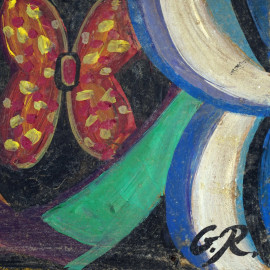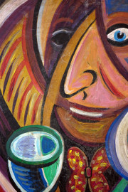 Volto con bicchiere e aeropittura, due dipinti ad olio su masonite, cm 25x18 e 22x24,5, siglati