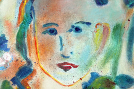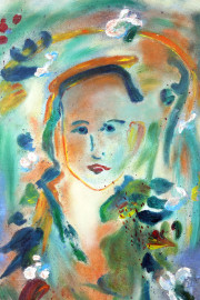 Volto, olio su tela applicata su cartone, cm 59x39, firmato, entro cornice.