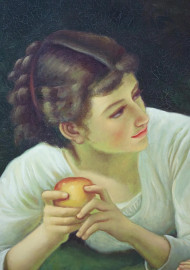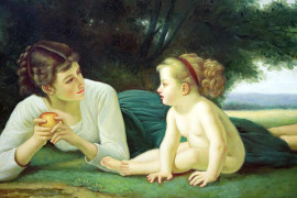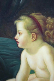 William-Adolphe Bouguereau (1825-1905) Copia da, Tentazione, olio su tela, cm 60x90, XX secolo, entro cornice.