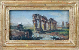 Acquedotto Claudio, olio su tela, cm 5,5x11,5 circa, XX secolo, entro cornice, (difetto sulla carta).