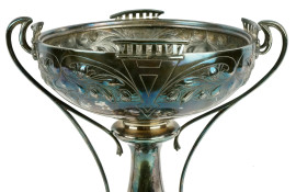 Alzata liberty in metallo argentato, cm h 23,5, XX secolo, (segni del tempo).