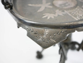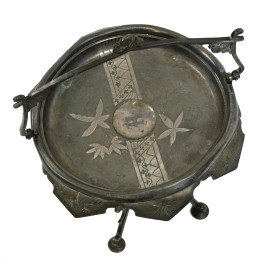 Alzatina liberty in metallo con decori floreali incisi, cm h 46, XX secolo, (segni del tempo).