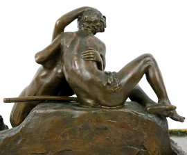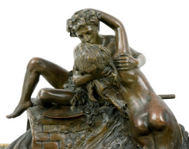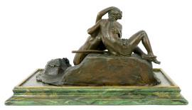 Amanti, scultura in bronzo, su base in legno, cm h 18x38,5x23,5, XX secolo.
