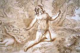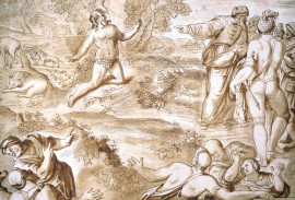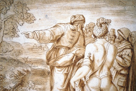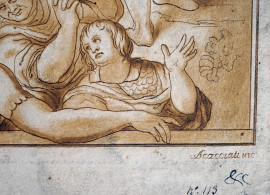 Andrea Scacciati (1725- 1771), Paesaggio con figure, incisione da Santi Tito, cm 28x38