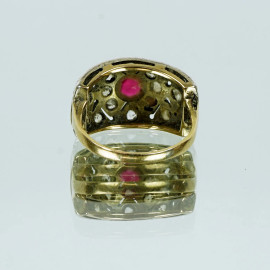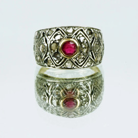Anello in oro 18 KT ed argento con rubino centrale e schegge di diamante, peso gr.4,8