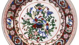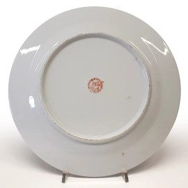 Antico piatto in porcellana cinese, tarda Dinastia Repubblica Popolare Cinese (XX sec.), finemente dipinto a mano, diametro cm 25, al retro marchio in lacca rossa, Cina Popolare