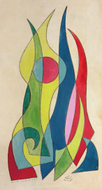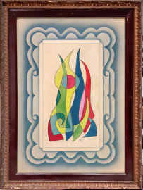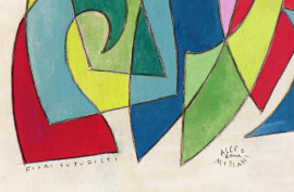Artista futurista del Novecento, Fiori futuristi, tempera su carta con passepartout d’epoca facente parte integrante dell’opera, cm 50x34, firmato e titolato